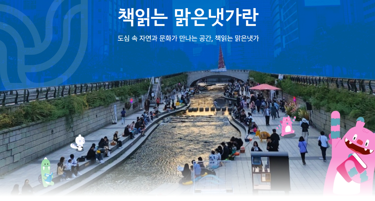 책 읽는 맑은냇가는 서울 청계천(모전교~광통교 구간)에 위치한 감성 가득한 야외도서관입니다. 자연과 책이 어우러진 이 공간에서는 약 2,000여 권의 다양한 연령대용 도서가 비치되어 있습니다. 그림책, 신간 도서, 교양 도서 등 누구나 쉽게 접근할 수 있도록 구성되어 있으며, 포토존(액자 포토존, 플라워 포토존), 조명 소품, 동물서가 등이 마련되어 있어 가족 단위 방문객들에게 특히 인기가 높습니다. 청계천 물소리와 봄의 왈츠 선율이 어우러지는 이곳은 책을 읽기에도, 사진을 찍기에도 최고의 장소입니다. 매년 운영 기간은 4월부터 10월까지로, 혹서기에는 야간 운영으로 전환됩니다.