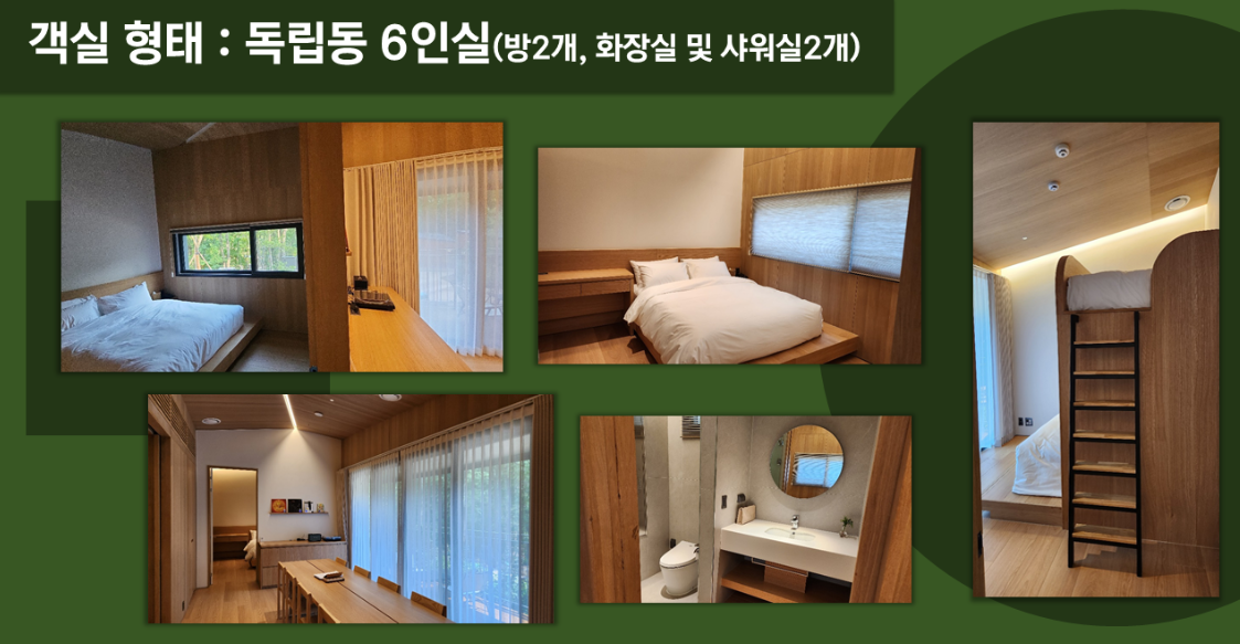 - 총 18동, 25개 객실 (최대 수용 인원 약 105명)
